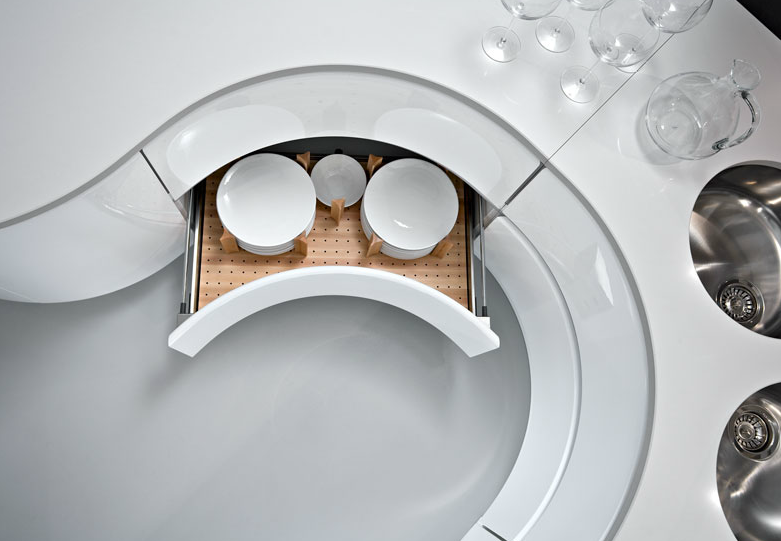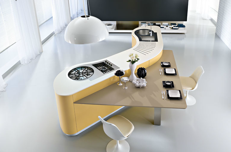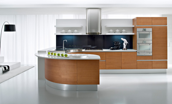 Las formas curvas de estas cocinas forman parte de las características más identificativas de Pedini Cucine.