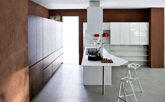 Como se trata de una encimera, la altura del asiento del taburete o silla es de 60 cm, es decir, unos 30 cm menos. Estos son modelos de Elmar Cucine y Snaidero.