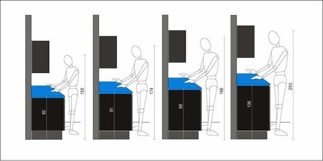 Trabajar de pie delante de una encimera que es demasiado baja o demasiado alta, obliga al usuario a asumir posturas incorrectas que a largo plazo, pueden tener graves consecuencias en su salud física.