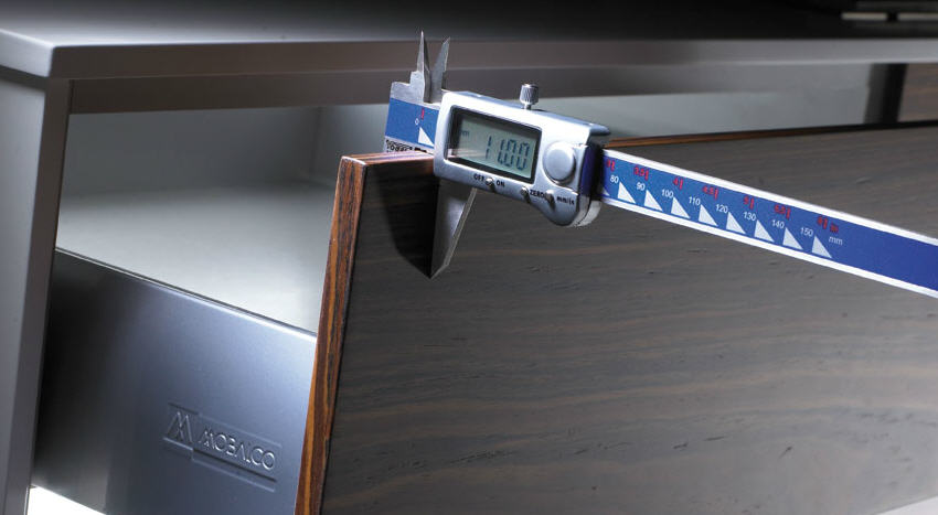 Frentes de 11 mm de espesor, de comportamiento hidrófugo, ligeros y de gran fortaleza.