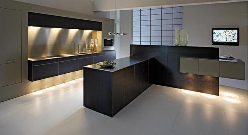 Las maderas nobles en versión moderna como el roble antracita, con los cantos de acero macizo que generan unas discretas juntas de unión entre los elementos, caracterizan a este modelo de Leicht.