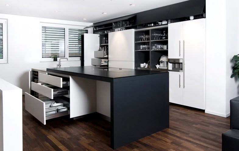 Una característica común de todos estos diseños, es la ausencia de tirador visible y los acabados en lacas de colores blancos y negros, grises o marrones oscuros.