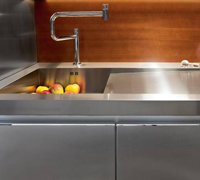 También con características patas de trompeta, este modelo Duality debe su nombre a su doble uso, que combina salón y cocina, diseño y funcionalidad. Las zonas de trabajo y los frontales de acero inoxidable hacen que refleje la luz y los colores del entorno.