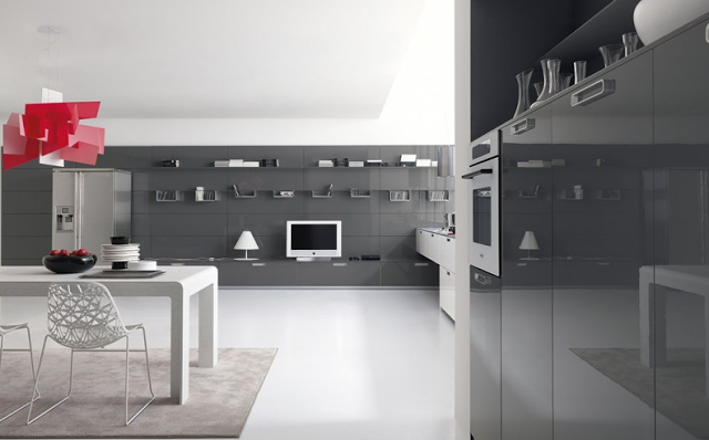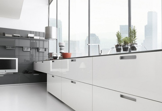 El diseño es perimetral, sin islas, lo que le da más protagonismo al comedor y al salón. En diversos acabados como lacado brillante, mate o satinado, polimérico o polilaminado, laminado o chapado en madera.