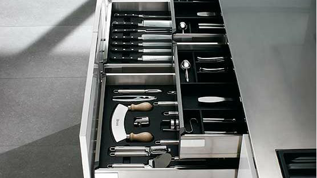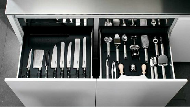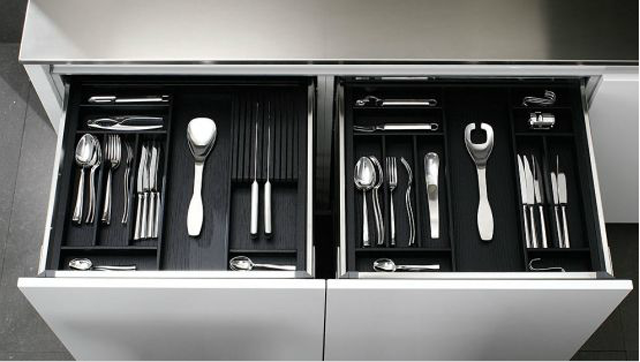 Cubiertos y utensilios bien organizados y a la mano en cualquier momento.