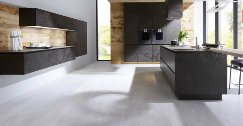 A pesar de su aspecto un tanto pesado y frío, luce una perfecta línea por su diseño sin tirador, que combina adecuadamente con otro material natural como la madera de roble. Es el modelo Alnostar Cera de la marca alemana ALNO.