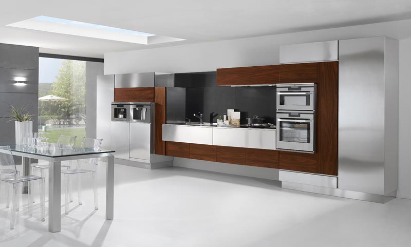 El palisandro y el acero inoxidable se fusionan perfectamente en este original modelo de Arca Cucine.