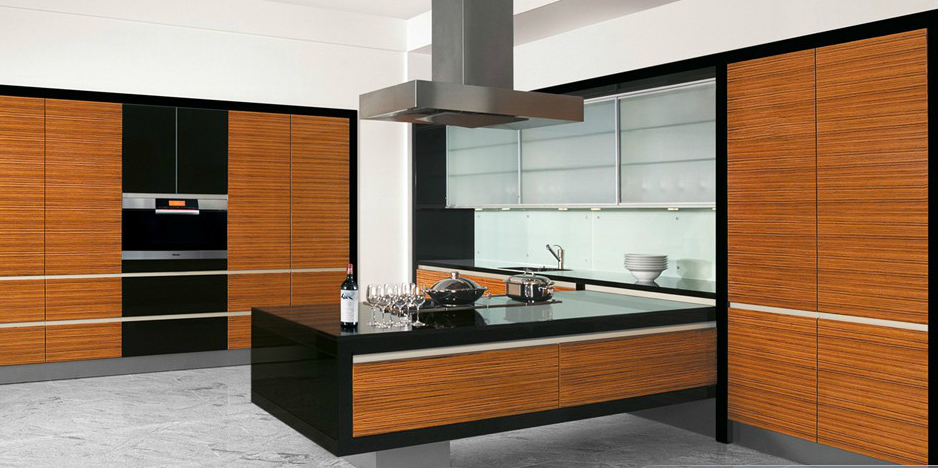 El zebrano con su marcada veta, se combina elegantemente con el lacado negro.