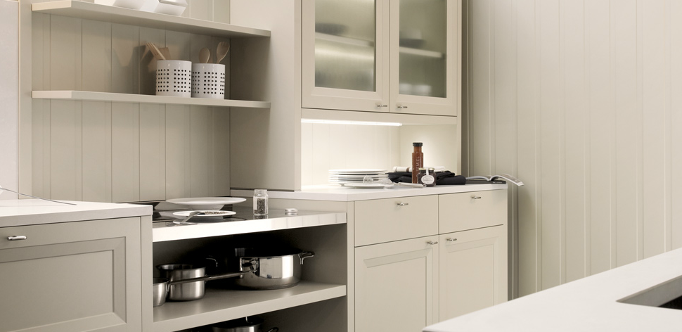 Acabados en una gran gama de maderas lacadas, mantiene la estética tradicional por sus puertas plafonadas y sus discretos tiradores.