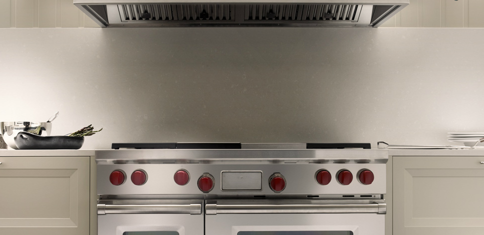 Una zona de cocción completa con doble horno, plancha, grill y cuatro quemadores de gas y una campana de acero inoxidable de elevadas prestaciones, son el centro neurálgico de este modelo Stimmug de Mobalco.