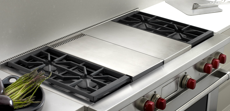 Una zona de cocción completa con doble horno, plancha, grill y cuatro quemadores de gas y una campana de acero inoxidable de elevadas prestaciones, son el centro neurálgico de este modelo Stimmug de Mobalco.