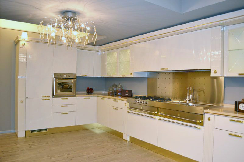 El símbolo de riqueza que transmite el color dorado en esta cocina parece transportarnos a una corte real de la época del siglo XVIII. Cocinar aquí no parece ser algo intrascendente sino un elegante y placentero ritual diario.