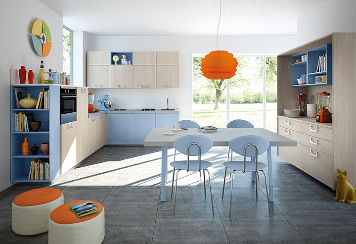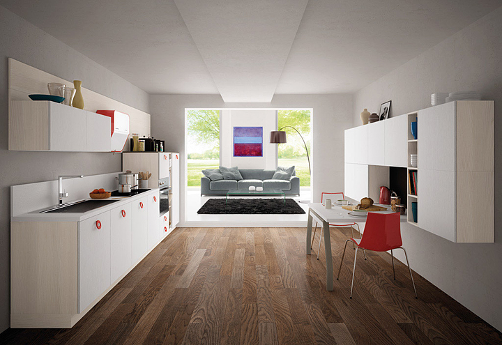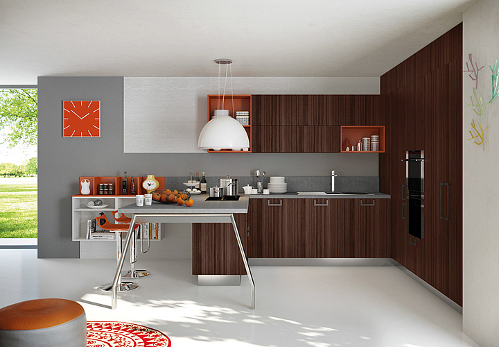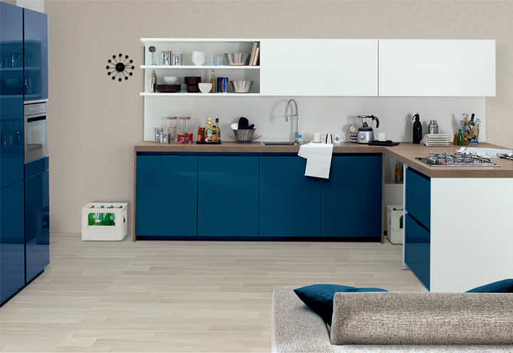 Materiales como melaminas, polilaminados, chapados de madera, lacados o de cristal, se combinan para lograr sencillas pero estupendas composiciones como estas de Spagnol Cucine.