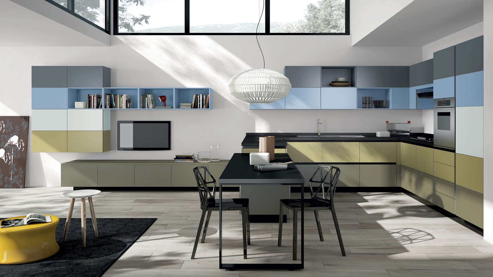 Los módulos suspendidos de altura reducida, están pensados tanto para un diseño abierto, creando continuidad entre la cocina y el salón, como para una cocina cerrada y de composición más conservadora. Una alternativa a tener en cuenta.