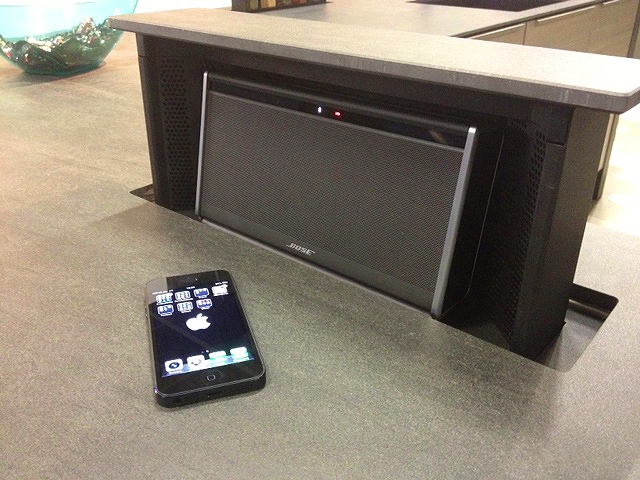 Se puede instalar fácilmente y tiene varias opciones como porta enchufes -incluso con USB-, porta cuchillos, especiero, porta llaves, balanza y reloj, altavoz, conexión para iPad y televisión de 19".
