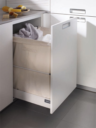 Mueble extraíble con bolsa para la ropa sucia. Especialmente práctico.